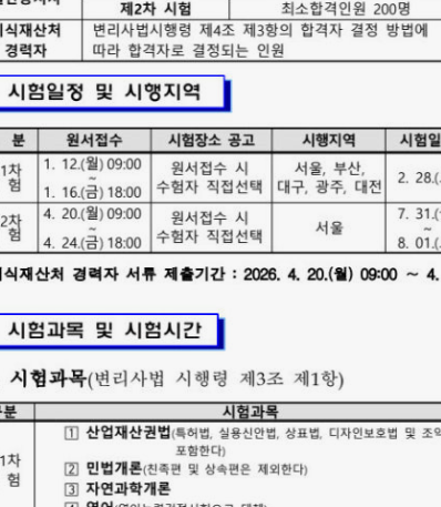 2026 변리사 시험 일정 총정리|1차·2차 접수기간과 과목 한눈에